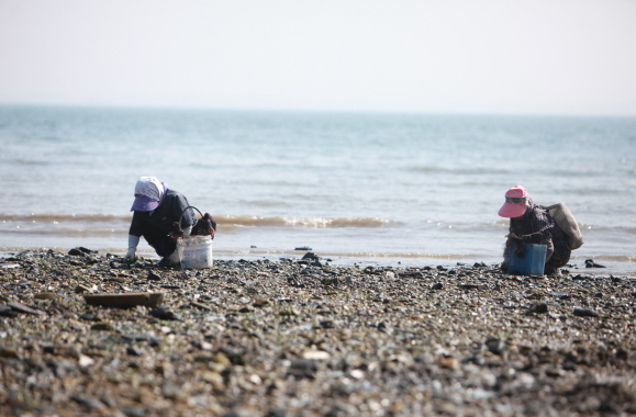 육도 주민들은 어업과 농업에 종사하는 것으로 생업을 유지하며, 요즘같이 봄철이면 오전 밀물 때 바지락잡이가 한창이라고 하는데요. 바닷물이 빠진 마을 앞 갯벌에서 바지락잡이로 하루를 시작하는 주민들의 풍경이 이채로운 어촌의 모습을 체험할 수 있게 해줍니다.