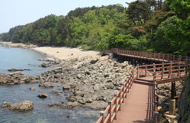 데크길을 걷다보면 바다를 향해 설치된 벤치를 만나볼 수 있는데요. 이 곳에서 여유있게 바다의 아름다움을 감상하는 것 역시 큰 매력이라고 합니다. 모래, 자갈, 바위가 뒤섞인 국화도 해안선은 부드러운 백사장이 일반적인 해안가보다 독특한 매력을 선사한다고 하네요.