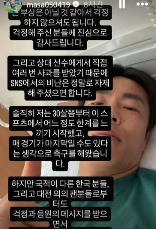 축구는 몸과 몸이 부딪히는 거친 스포츠입니다. 하지만 그 밑바탕에는 서로를 보호해야 한다는 최소한의 약속인 '동업자 정신'이 전제되어야 합니다. 조현택 선수가 보여준 결여된 직업윤리는 리그의 질을 떨어뜨리고 팬들을 경기장에서 멀어지게 만듭니다. 이번 사태를 계기로 K리그가 선수 보호를 위한 더욱 엄격한 가이드라인을 확립하기를 기대합니다. 마사 선수의 빠른 쾌유와 그라운드 복귀를 진심으로 응원합니다.