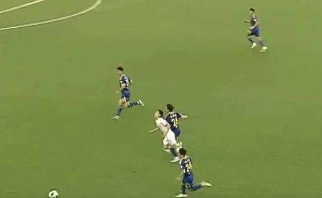 당시 상황을 복기해보면 조현택의 행동은 결코 정상적인 수비 과정이라고 볼 수 없습니다. 마사는 왼쪽으로 패스를 보낸 직후 몸을 돌리던 상황이었고, 조현택은 마사의 시야 밖인 뒤쪽에서 전속력으로 달려와 자신의 몸을 마사의 등에 그대로 들이받았습니다.