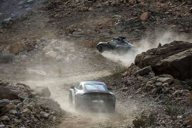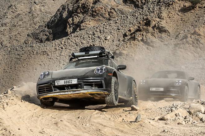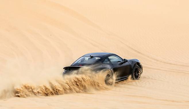 포르쉐 911 다카르는 모래와 높은 사구 위에서도 성능을 입증했다. 드라이버들은 섭씨 45도에 이르는 두바이와 모로코에서 차량을 극한까지 몰아붙이며 가파른 50미터 모래 언덕 등반을 반복했다.