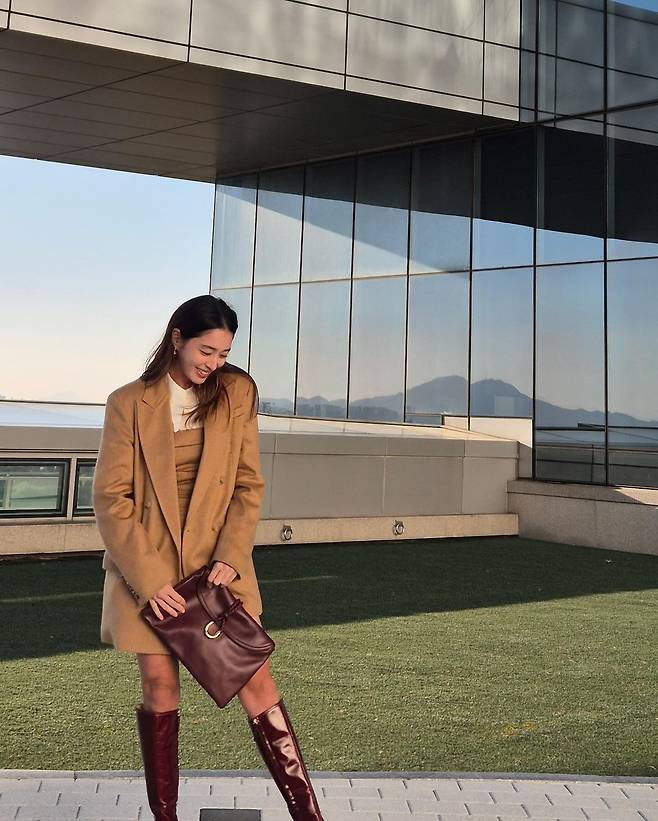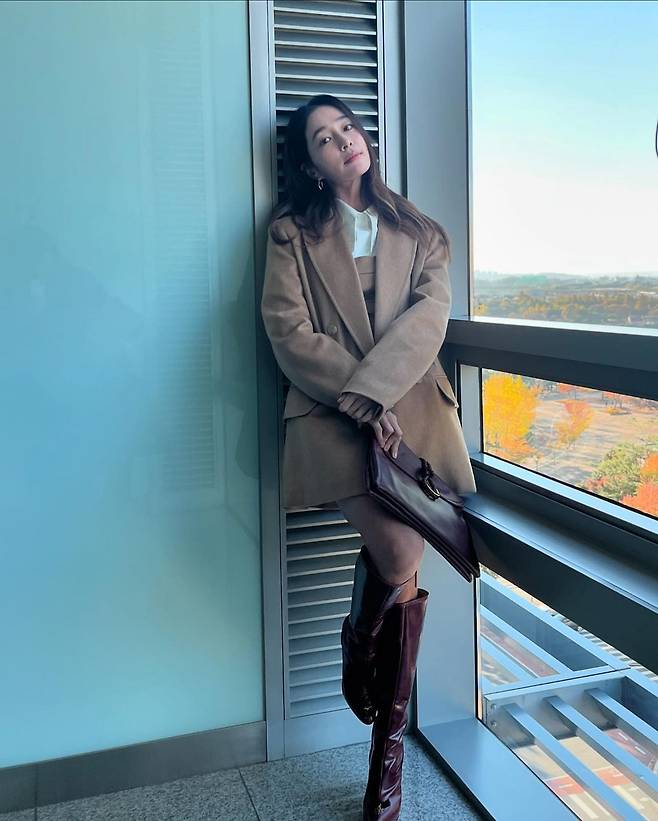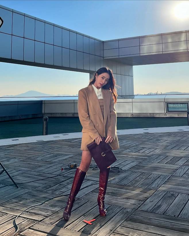 공개 된 사진 속 이민정은 빅 카라 화이트 셔츠를 입고 베이지 컬러의 탑 미니원피스를 입어 날씬한 기럭지를 자랑했다. 자켓을 걸쳐 가을무드가 물씬 풍기는 스타일링을 자랑했다. 또한 와인 컬러의 힐 부츠를 신고 와인컬러 스퀘어백을 들어 세련되고 도회적인 매력을 뽐냈다.