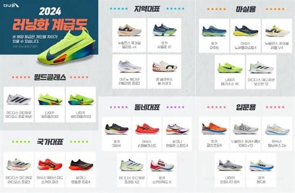 | ▲ '급' 나누기가 아니라, 러너의 목표와 수준에 따른 구분 아닐까. '계급'이란 말은 위트고. 내겐 이 표가 일종의 정보로 보인다. 아래 가격대가 텅 비어 매우 아쉽긴 하지만. |