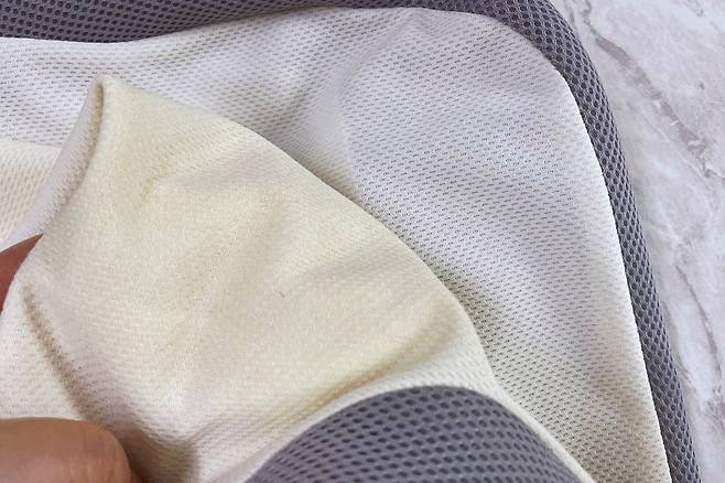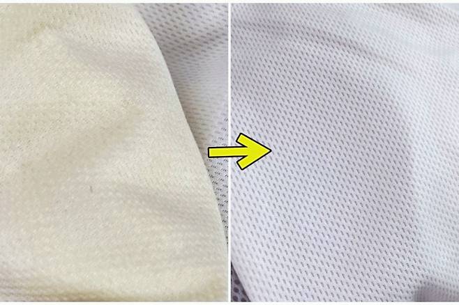 이렇게 누렇게 찌든 때가 생기면 그냥 세탁기에 빨아도 잘 안 지워지더라고요. 그냥 사용하자니 보기가 싫어 버릴까도 고민이 되던데요. 이럴 때 이것 하나로 아주 쉽게 해결해 보세요.