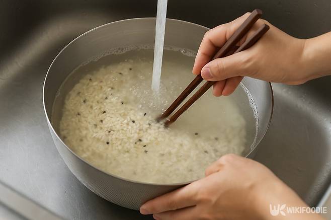 손대는 게 부담스럽다면 젓가락이나 거품기를 이용해 살살 저어 씻는 것도 좋다. 다만 물이 완전히 맑아질 때까지 헹구는 것도 좋지 않다. 3~4번 정도 물만 갈아주는 수준이 가장 적당하다.