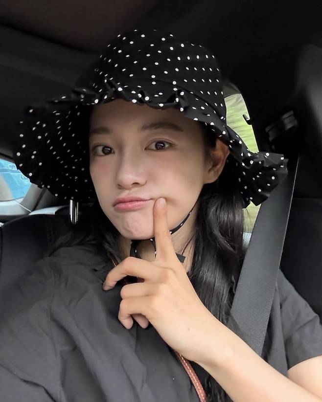 맑은 물과 푸른 나무가 어우러진 풍경 속에서 김세정의 싱그러운 분위기가 더욱 빛났다.