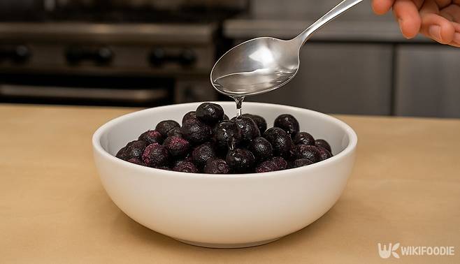 1. 냉동 블루베리 100g에 알룰로스 2~3스푼을 넣고 고루 섞는다.