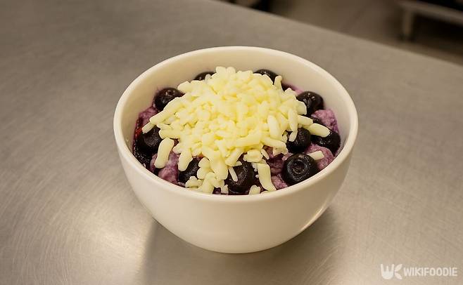 스트링치즈를 사용할 경우, 손으로 찢어서 얹으면 된다. 치즈와 블루베리와 어우러져 단짠단짠한 맛을 낸다. 블루베리의 산미와 치즈의 풍미가 입안을 가득 채우고, 빵집에서 파는 디저트와는 다른 포만감을 준다.