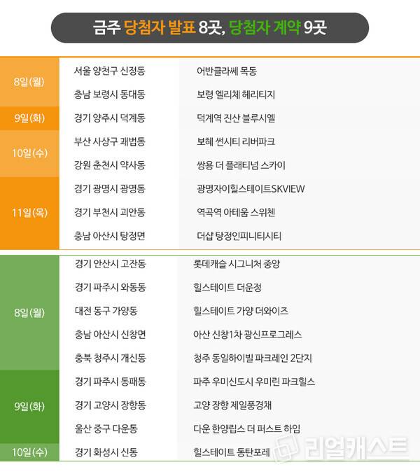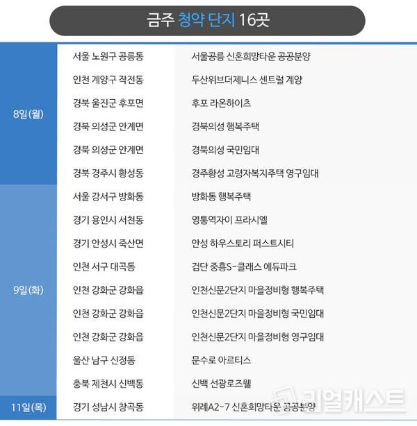 라인건설과 호반건설은 광주 북구 삼각동에 짓는 민간공원조성 특례사업 단지인 ‘위파크 일곡공원’ 모델하우스를 열고 본격적인 분양에 나섭니다. 강원 강릉에서는 유탑건설이 ‘강릉 유블레스 리센트’ 모델하우스를 오픈합니다. KTX강릉역 역세권으로 아파트와 오피스텔이 함께 있는 복합단지입니다.