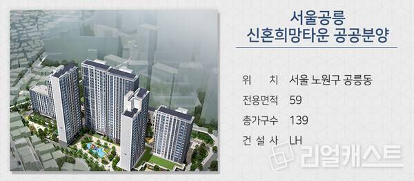 LH는 서울 노원구 공릉동에서 신혼희망타운 공공분양 아파트 입주자 모집에 나섭니다. 서울공릉 신혼희망타운은 서울지하철 6호선 화랑대역 역세권입니다. 태릉초, 공릉중이 단지 앞에 위치하고, 인근에 중랑천 산책로를 비롯해 태릉, 봉화산 등도 가까워 쾌적한 환경을 누릴 수 있습니다.