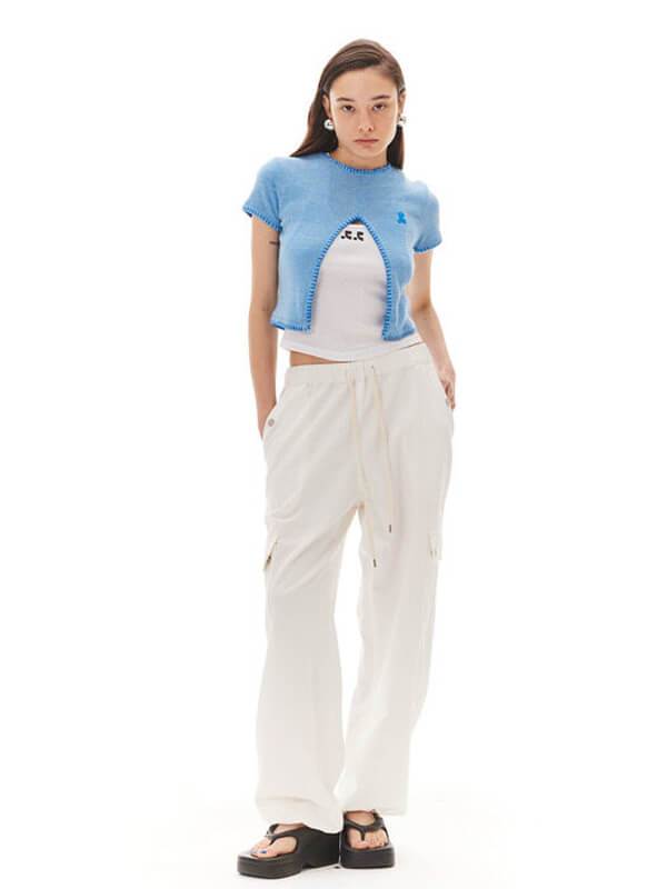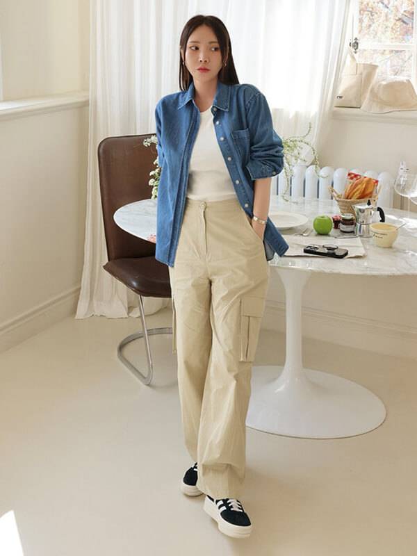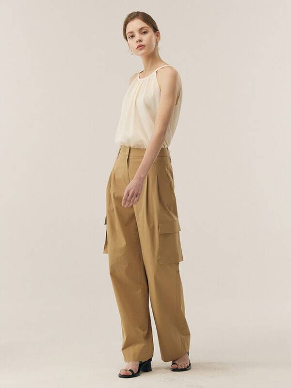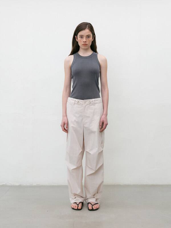 모노하는 내적 아름다움을 끌어내어 표현할 수 있도록 디자인한다. 소재의 역할을 중요시하며 여백과 단순함이 주는 강력한 멋을 믿고 추구하는 대표 브랜드다. Cargo pants는 허리 사이즈 조절 가능한 스트링 기능이 있다. 포켓 디테일로 멋스러우며 밑단 사이즈 조절 가능한 버튼 디테일과 캐주얼한 무드의 바스락거리는 코튼 혼방 소재를 사용했다.
