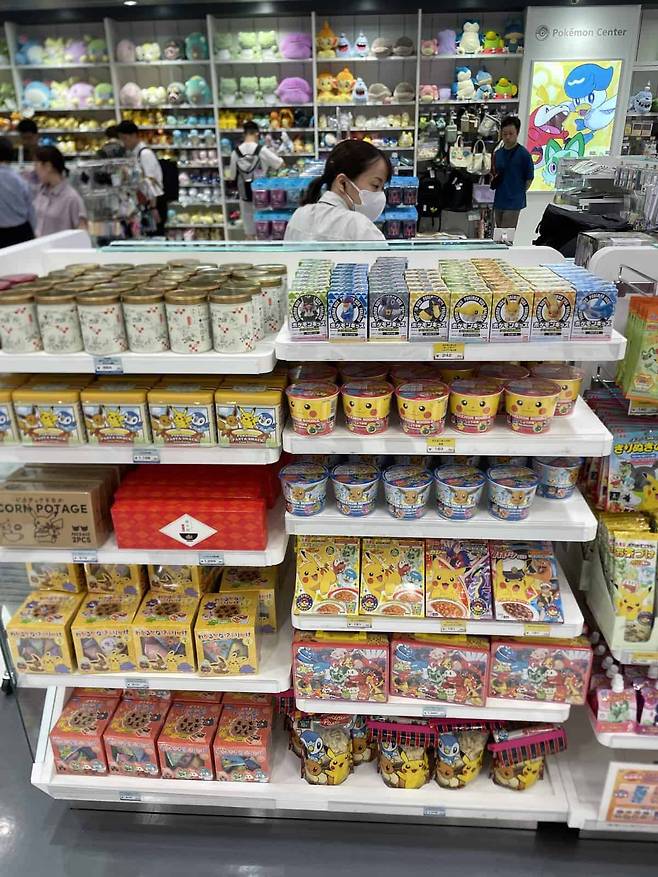 이곳에 들어서면 가장 먼저 다채로운 포켓몬 굿즈가 시선을 압도합니다. 봉제인형, 문구류, 피규어, 옷, 액세서리까지 포켓몬 캐릭터를 활용한 상품이 셀 수 없이 많습니다. 특히 일본 지역 한정 상품이나 한국에서 보기 힘든 레어템도 있어, 구경하는 재미가 쏠쏠합니다.
