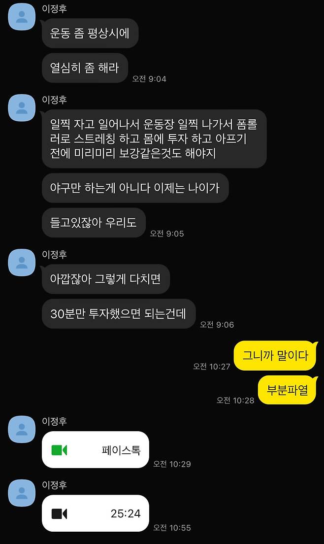부상 이후 박정우는 자신을 아끼는 이들의 애정어린 쓴소리를 들었다.