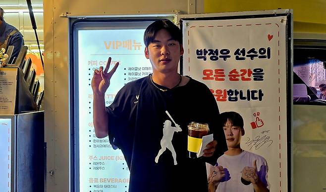 박정우 이름으로 챔피언스필드에 커피차가 등장한 것이다.