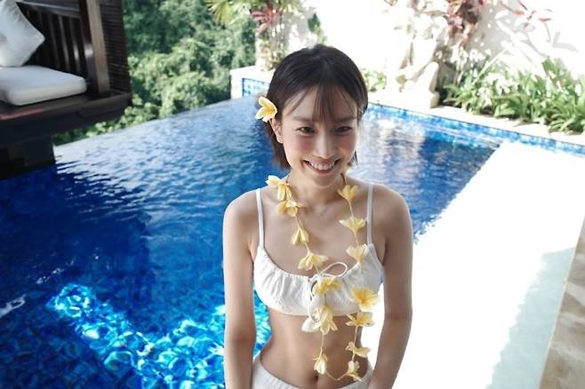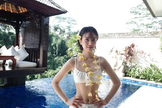 수영복도 청순할 수 있다는 것을 보여주는 장희령 배우의 스타일! 화이트 컬러 & 자수 디테일의 비키니 셋업을 선택했습니다. 추구미가 청순이라면, 장희령 배우처럼 화이트 컬러의 비키니를 선택해보세요!