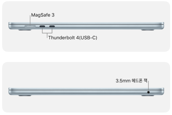 애플은 오래전부터 맥북 라인업에 고성능 인터페이스인 썬더볼트(Thunderbolt) 단자를 탑재해 왔다. 맥북 에어는 썬더볼트 4 단자 2개를, 맥북 프로는 모델에 따라 썬더볼트 4 혹은 썬더볼트 5 단자를 3개 제공한다. 다행히 이 단자들은 하위 규격인 썬더볼트 3나 일반 USB-C와도 호환된다.