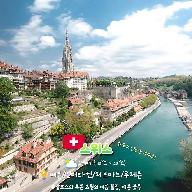 그림 같은 풍경이 펼쳐지는 스위스에서 한국의 무더위를 잊어보는 것은 어떠신가요?