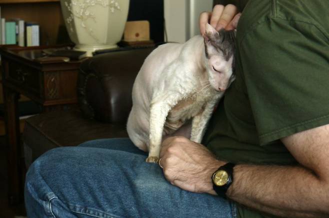 코니시 렉스는 집사의 무릎을 떠나지 않을 정도로 개냥이라고 해요. 코니시 렉스를 키우는 어떤 집사는 '고양이지만 강아지 같다'고 말했습니다.