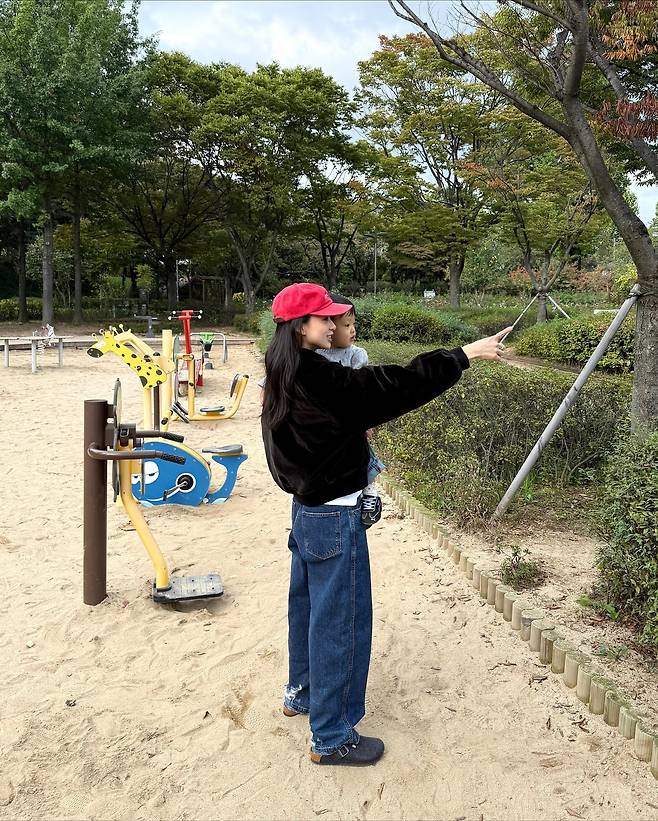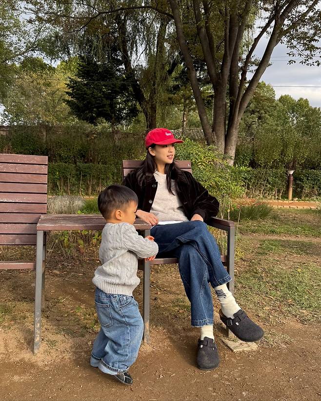 함께 있는 아이와의 룩 시너지도 흥미로워요.