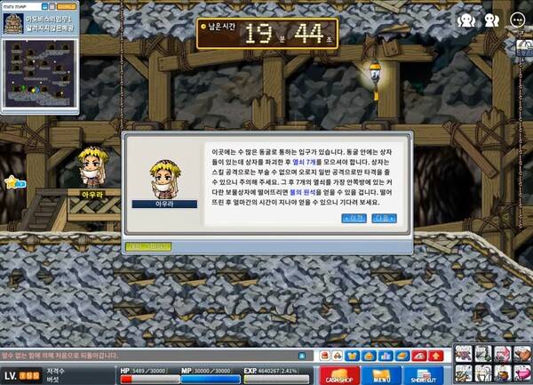 열쇠 7개를 수집해 거대한 상자 앞에 떨어뜨리면 '불의 원석'을 얻을 수 있다. 불의 원석을 가지고 폐광 내 NPC '아우라'에게 말을 걸면 2단계로 진입할 수 있다. 추가로 종이 문서는 수집하지 않아도 무관하다.