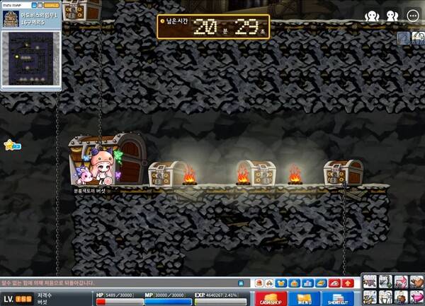 영상에서는 범위 공격을 회피하며 맹공격을 펼치는 운영자들의 모습을 볼 수 있었다. 이때 폭탄이 많아지기 전에 담당자가 직접 부딪혀 처리하는 모습이 추억을 자극했다. 첫 번째 HP 칸을 모두 소모시키면 본체가 분리된다. 움직임이 재빠르기 때문에 근접 공격 직업보다는 원거리 공격 직업이 상대하기가 더 수월하다. 테스트 버전인 만큼 아이템은 드롭되지 않았다.