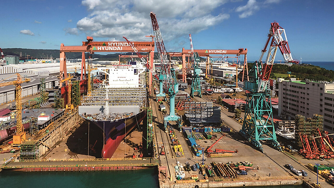 ๊ทธ ๋น๋ฐ์ โ์งโ์ ์๋ค. LNG ์ด๋ฐ์ , ์ด๋ํ ์ปจํ ์ด๋์ , ์นํ๊ฒฝ ์ถ์ง์ ๋ฑ์ ๋จ์ ์ ์์ ๋์ด ๋ณตํฉ ์์คํ ๊ณผ ์ด์ ์ ๋ขฐ๊ฐ ๊ฒฐํฉ๋ผ์ผ ํ๋ค. ํ๊ตญ ์กฐ์ ์ ์ ์ ๋ฐ๋น ํ๊ท CGT๊ฐ 4๋ง8000์ ๋ฌํด, ์ค๊ตญ(1๋ง7000)์ ์ธ ๋ฐฐ์ ์ด๋ฅธ๋ค. ๊ธฐ์ ๋ ฅ, ์์ ์ฑ, ์ฐ๋ฃ ํจ์จ, ์์จ์ดํญ ์๋ฃจ์ ๊น์ง ํฌํจ๋ ํตํฉ ํจํค์ง๋ฅผ ๊ณต๊ธํ ์ ์๋ ๊ตญ๊ฐ๋ ํ๊ตญ์ด ๊ฑฐ์ ์ ์ผํ๋ค.