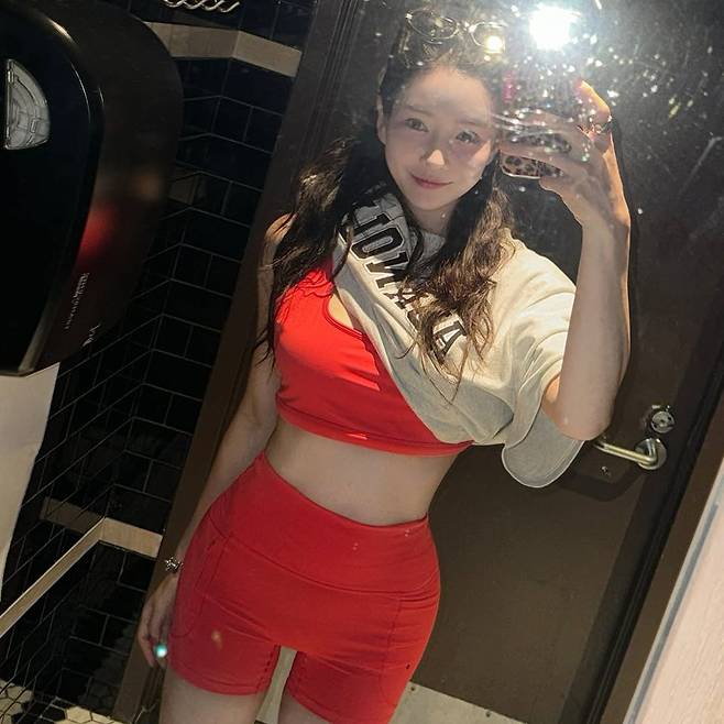 선택된 컬러는 강렬한 레드. 상하의를 동일 컬러로 매치한 셋업 스타일은 경쾌하고 스포티한 분위기를 자아낸다. 특히 몸에 밀착되는 하이웨이스트 쇼츠는 다리 라인을 더욱 길고 슬림하게 보이게 하며, 드롭된 크롭 티셔츠와의 조합으로 복부 라인을 자연스럽게 드러내 노출과 절제 사이의 균형을 이룬다. 이는 과하지 않으면서도 존재감을 확실히 하는 스타일링 공식이다.