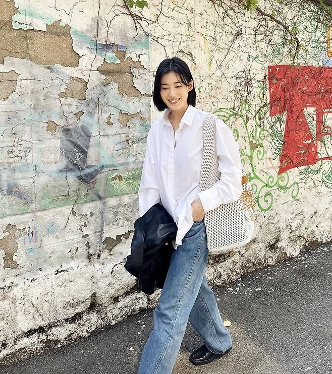 특히 이번 스타일은 누구나 쉽게 따라할 수 있는 심플한 조합으로 구성되어 있어, 데일리룩은 물론 주말 나들이, 가벼운 산책이나 카페 방문에도 완벽하게 어울린다. 셔츠와 데님 팬츠, 플랫 슈즈에 니트백 하나만 더해도 충분히 멋스러운 분위기를 낼 수 있다는 점이 매력적이다.