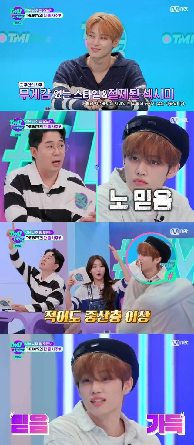 다음으로 주연의 사주로 “무게감 있는 스타일, 절제된 섹시미로 남자답고 책임감이 강해 사윗감으로 최고라고 나왔다”고 말하자 선우는 “사주에 섹시미가 나오냐”고 황당해 했다.