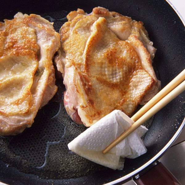 팬이 뜨거운 상태에서 키친타월로 기름을 닦아낸 후 식은 기름은 음식물 쓰레기로 버립니다. 키친타월은 종량제 봉투나 음식물 쓰레기 봉투에 버릴 수 있습니다.