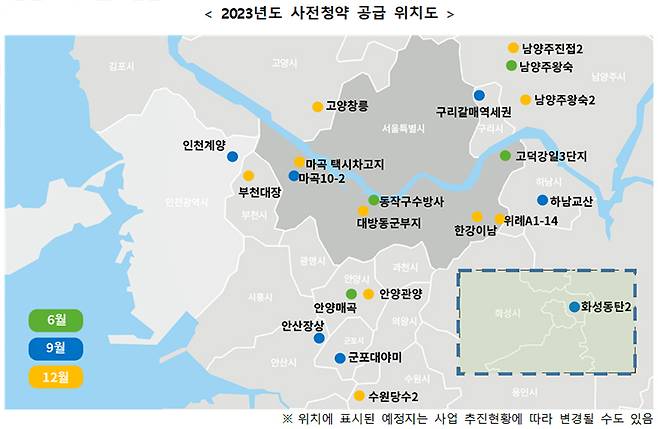 9일 동작구 수방사를 시작으로 12일에는 남양주왕숙과 안양매곡, 13일에는 고덕강일 3단지에 대해 사전청약 공고를 시행한다.