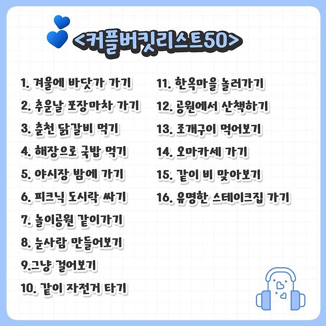 연인과 함께하고 싶은 버킷리스트 모음