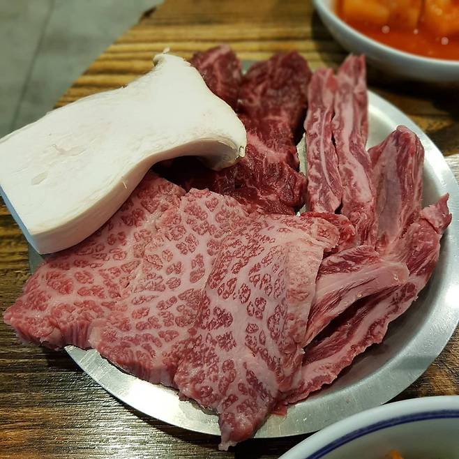 ▲메뉴: 한우 특수부위모듬 39,000원 / 한우 등심 42,000원