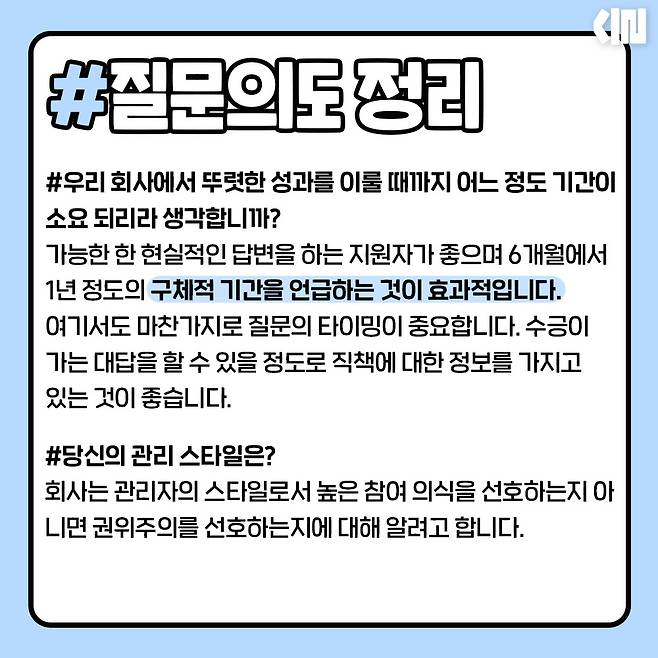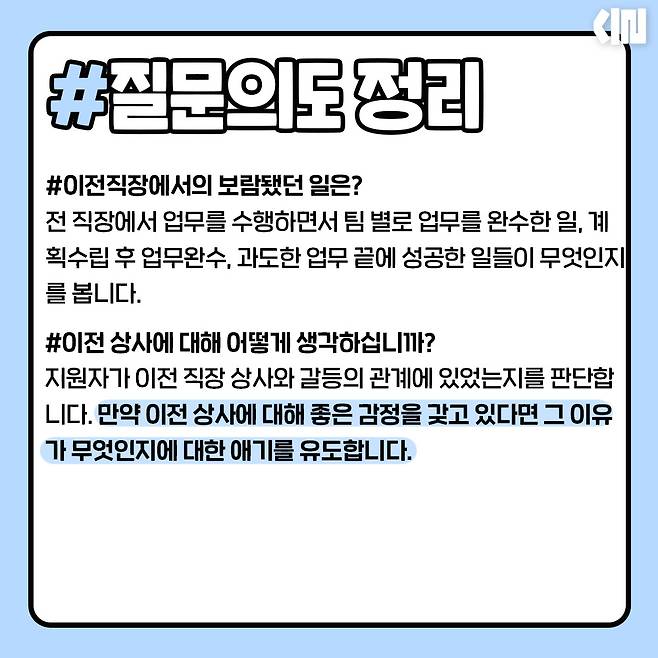 면접시 자주 나오는 질문 및 질문 의도 4편