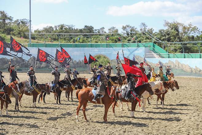 2008년 ‘칭기스칸의 검은 깃발’로 첫 공연을 시작해, 지금은 웅장한 스케일의 <위대한 정복자 광개토태왕> 공연이 펼쳐지고 있어요. 기마 전투, 곡예, 무용이 어우러진 이 공연은 오직 이곳에서만 볼 수 있는 생생한 현장감을 자랑해요.