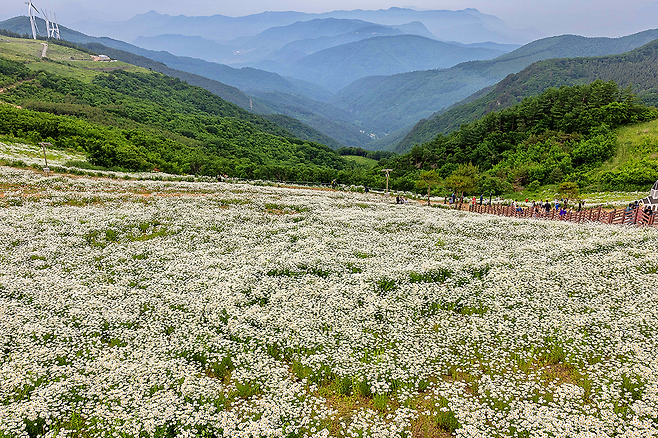 지금은 계절마다 다른 식생이 나타나는 야생화 군락지로 변화했다. 특히 6월 중순부터 7월 초 사이에는 샤스타데이지가 넓게 퍼지며 평원을 가득 채운다.