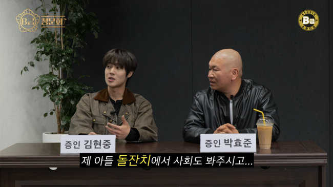 이날 김현중은 박효준과의 친분에 대해 “제 군 면회를 와준 유일한 연예인이다. 제 아들 돌잔치에서 사회도 봐주셨다”고 설명했다. 친해진 계기에 대해 그는 “우리가 2013년도에 알았다”고 말했고, 박효준은 “만화책 ‘도시정벌’을 원작으로 하는 드라마를 같이 찍었다”고 전했다.