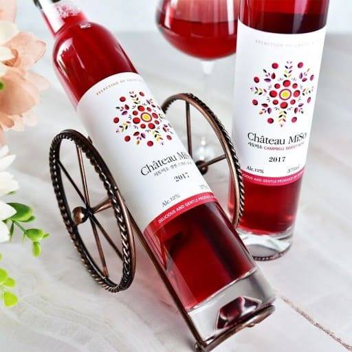 충북 영동의 도란원 와이너리에서 생산된 '샤토미소 캠벨 스위트 로제'는 한국 로제 와인의 대표주자로 자리매김하고 있습니다. 옅은 진홍 빛깔이 특징적인 이 와인은 자두, 살구, 복숭아의 풍부한 향기와 함께 우리나라 고유의 토속적인 매력을 느낄 수 있습니다.
