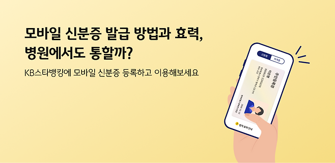 기존에는 정부 모바일 신분증 앱과 삼성 월렛에서만 모바일 신분증 이용이 가능했는데요. 이제 KB스타뱅킹에서도 모바일 신분증이 발급돼요.