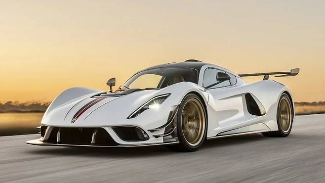 부가티의 기록을 호시탐탐 노리는 헤네시. 500km/h 돌파를 목표로 개발된 베놈 F5는 1,817마력의 6.6리터 트윈 터보 V8 엔진을 장착했습니다.