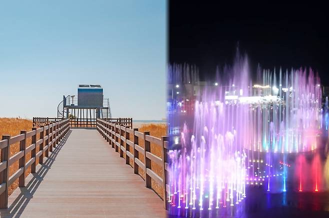 다대포의 밤을 책임지는 건 단연, ‘꿈의 낙조분수’입니다. 세계 최대 규모의 바닥 분수로 알려진 이곳에서는 매년 4월 말부터 10월까지, 음악과 조명이 어우러진 화려한 분수쇼가 펼쳐지는데요. 해가 진 직후, 일몰과 어우러지는 그 풍경은 사진으로 다 담을 수 없는 감동적인 장면을 선사합니다.