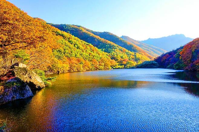 주왕산은 단풍 명소로도 유명해 가을철에는 붉게 물든 단풍을 감상하며 등산을 즐길 수 있습니다.