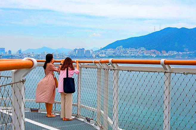 부산의 송도용궁구름다리는 해변 위에 떠 있는 다리로, 탁 트인 바다 풍경을 즐길 수 있는 명소입니다.