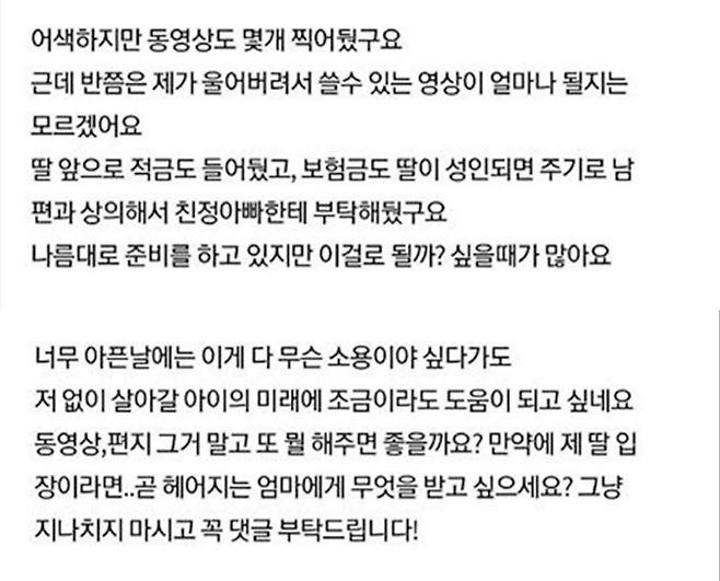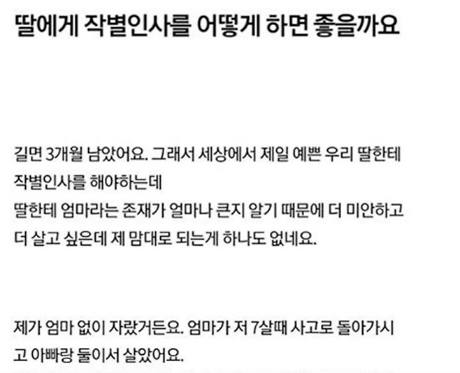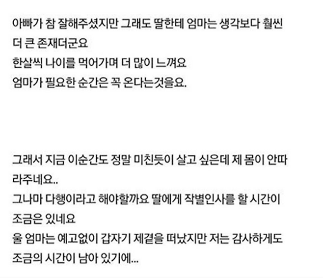 남은 수명 3개월 딸에게 어떻게 작별인사하면 좋을까요?..