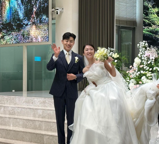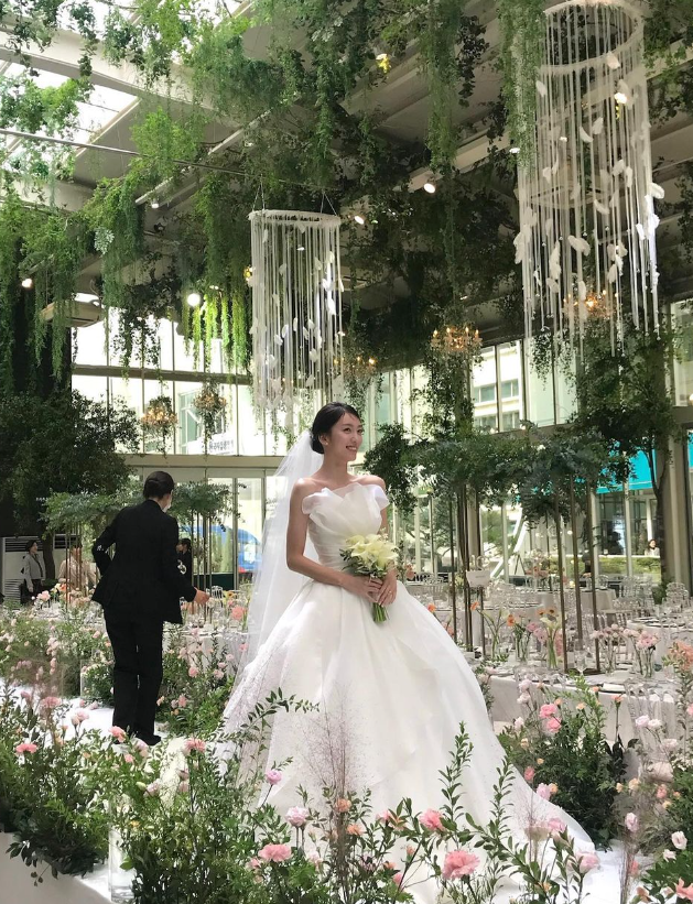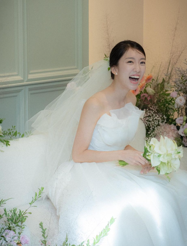 배우 고형우와 결혼식을 올린 이수지는 화사한 순백 드레스 자태를 뽐내 시선을 사로잡았다.
