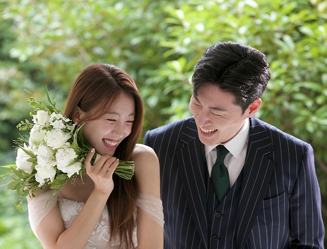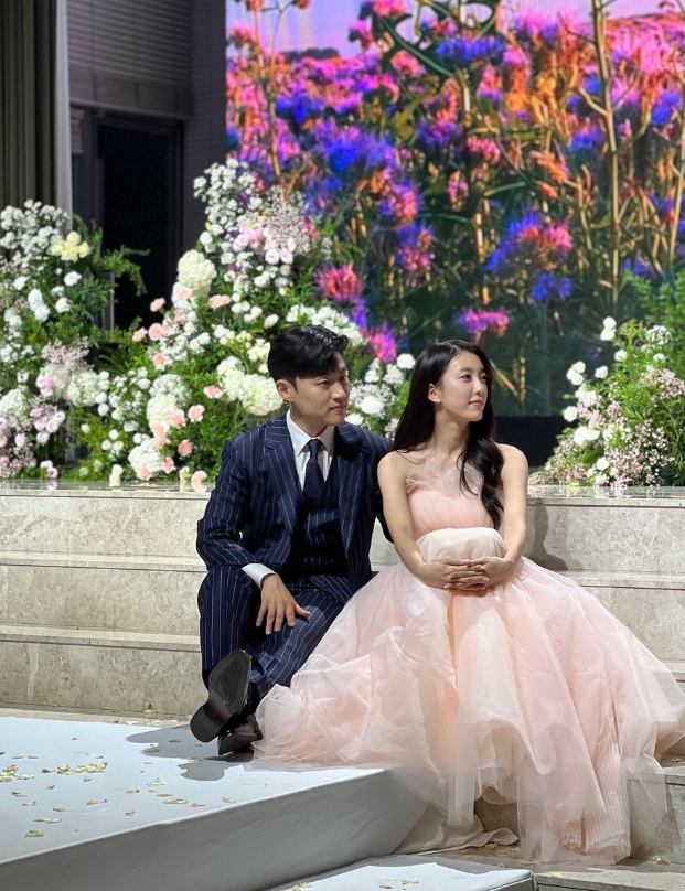 앞서 이수지는 웨딩화보를 공개했고 연핑크색 쉬폰 드레스를 입고 청순한 분위기를 자아냈다.