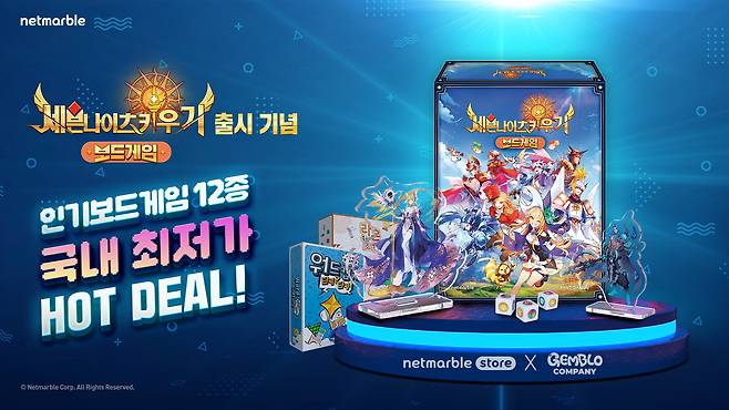 [이포커스] 넷마블은 자사의 공식 스토어 ‘넷마블스토어’에 <세븐나이츠 키우기> 보드게임을 정식 출시하고 젬블로컴퍼니의 보드게임 12종 할인 판매 행사를 진행한다고 24일 밝혔다.