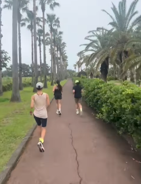 제주도 자연을 배경으로 한 야외 러닝부터 헬스장에서 진행한 벤치프레스, 그리고 트래킹 도중 당당하게 팔근육을 자랑하는 모습까지 담겼다.