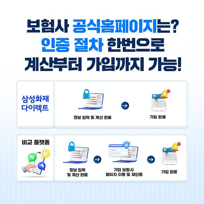 공식 홈페이지에서 계산하면 인증 절차 한번으로 내 차 보험료 조회 및 가입까지 한번에 할 수 있습니다!