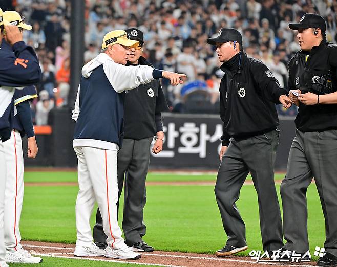 5회말 삼자범퇴로 돌아섰던 한화는 6회말 득점 찬스를 잡았으나 기회를 살리지 못했다. 황영묵 좌전안타, 플로리얼은 비디오 판독 끝 내야안타로 출루하며 무사 1·2루. 그리고 문현빈의 깔끔한 기습번트로 무사 주자 만루. 하지만 노시환의 타구가 투수와 포수를 거쳐 1루수에게 향하는 병살타가 됐고, 채은성 고의4구 후 이진영은 헛스윙 삼진을 당하며 득점 없이 이닝이 끝났다.